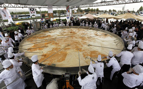 Chefs cook an omelette during a Guinness World Records attempt for the world's largest omelette in Ankara. The Turkish Egg Producers Association celebrated World Egg Day on Friday with an attempt to cook the world's largest omelette weighing 6 tonnes with a total of 432 litres of oil and 110,000 eggs used. The current record holder for the largest omelette was one made in Cape Town, Western Cape, South Africa, on 9 October 2009 weighing 3.625 tonnes. (REUTERS)