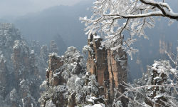 Highlight: Zhangjiajie displays different scenery in winter, the mountains, trees and the whole earth are enwloped in a thin coat of snow What a spotless silvery world Just come to Zhangjiajie to enjoy the spectacular ice world