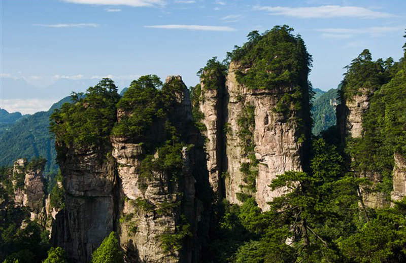 Quartz Sandstone Peak Forest and Karst Caves constitute the outstanding landscape features of Zhangjiajie, which are rare in the world. Here you'll find yourself with hundreds of grotesque peaks, beautiful waters, towering trees, deep valleys and so on.